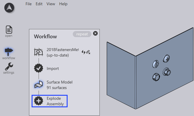 Click the workflow icon and select explode assembly.